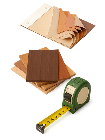 "سيزورك متخصصنا في منزلك لأخذ قياسات دقيقة، مع إحضار قائمة تحتوي على عينات من الأقمشة والمواد. بهذه الطريقة، يمكنك اختيار التشطيبات والملمس مباشرة من موقعك، مما يضمن توافقًا مثاليًا مع مساحتك دون أي عناء إضافي.